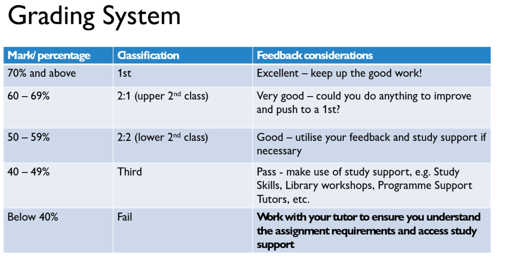 If you are confused about the grade/feedback, make sure you reach out to your tutor to help you to understand it, so that you can use it to move forward.